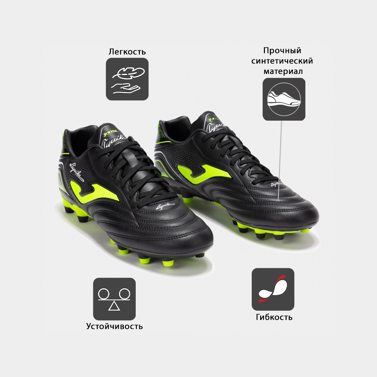 Классические футбольные бутсы для игры на натуральном газоне. Верх изготовлен из прочного синтетического материала (искусственная кожа), обеспечивающего хороший контроль мяча. Внутренняя часть – из нейлона с высокой прочностью на растяжение. Стелька из EVA отвечает за комфорт. Шипы на прочной подошве из износостойкого полиуретана расположены так, что на натуральном газоне игрок способен хорошо контролировать свои движения во время бега и резких перемещений.