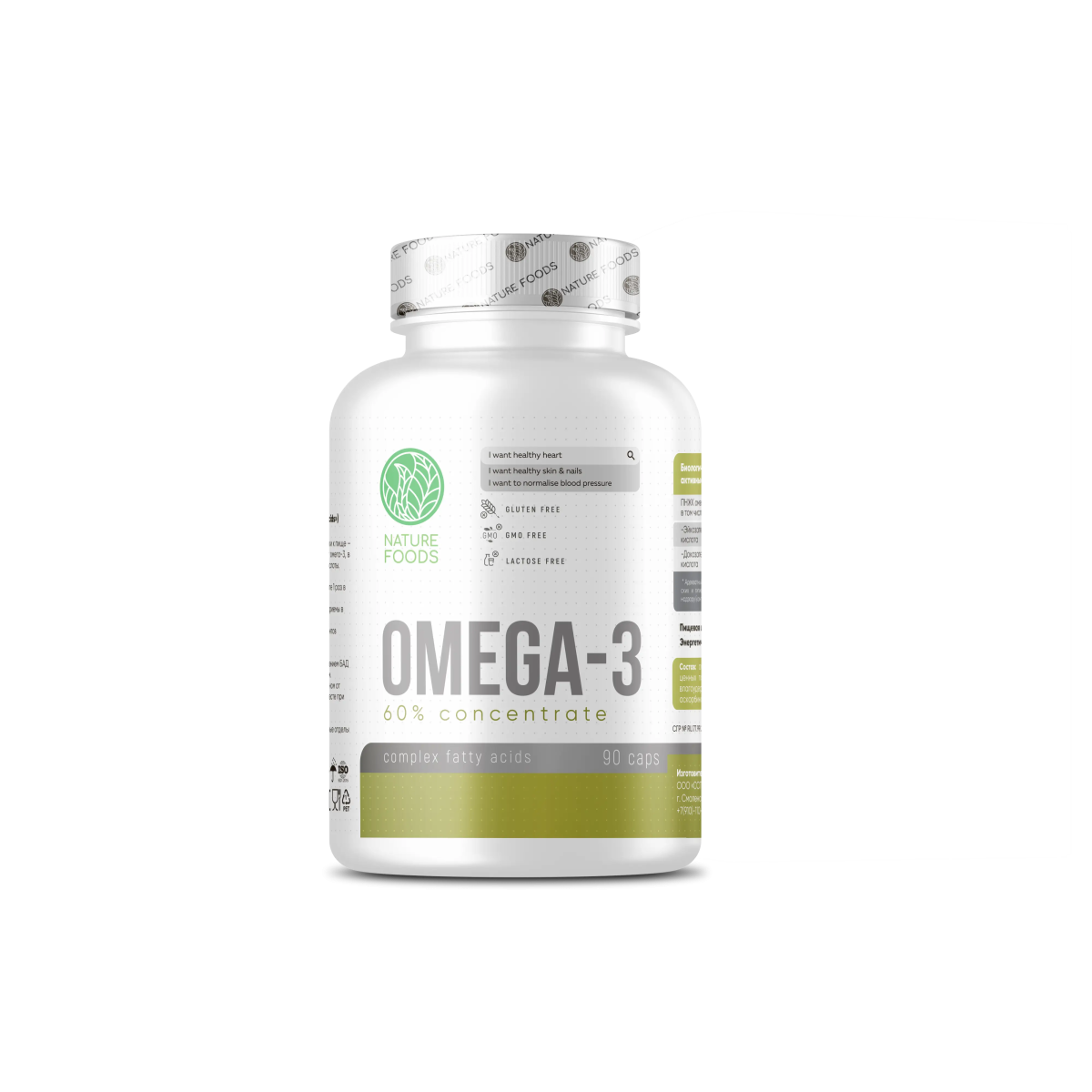 Nature Foods Omega-3 60% – чистые омега-кислоты для здоровья сердца, мозга и суставов Nature Foods Omega-3 60% — это высококонцентрированный источник полиненасыщенных жирных кислот, необходимых для полноценной поддержки сердечно-сосудистой системы, здоровья мозга, зрения и суставов. Продукт создан на основе качественного рыбьего жира и идеально подходит как для активных людей, так и для тех, кто заботится о своём здоровье ежедневно.