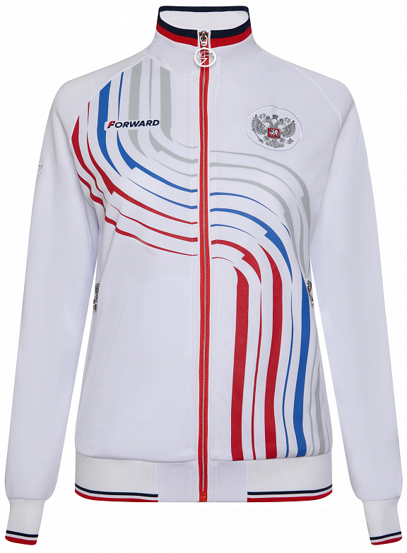 Куртка прямого силуэта, на подкладке из сетки. Полочка с центральной застежкой молнией. Воротник стойка. Боковые карманы прорезные с тесьмой молнией. Рукава покроя реглан. Воротник, манжеты и пояс куртки обработаны трикотажным полотном ластик. Нанесения на куртке: принт «FORWARD», фирменный принт. Брюки прямого силуэта, боковыми карманами на тесьме молнии. Пояс с эластичной тесьмой. Ширина пояса регулируется шнуром, вставленным внутрь. По боковым швам выполнены вставки с контрастными кантами. Низ брюк обработан в подгибку с эластичным шнуром и фиксаторами, для регулировки ширины. Нанесения брюки: принт «FORWARD». Состав: Ткань верха 100% Полиэстер, 250г/м², подкладка сетка 100% Полиэстер.