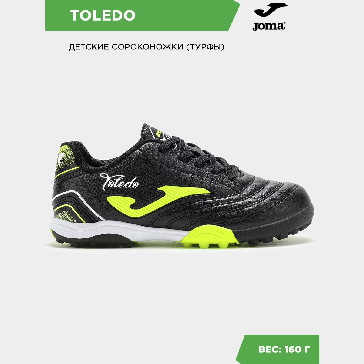 Детская универсальная модель турфов JOMA TOLEDO. Верх выполнен из качественного синтетического материала и обеспечивает отличный контроль мяча. Специальная перфорация с использованием по технологии VTS по обеим сторонам верхней части позволяет отводить излишнюю влагу и тепло, чтобы комфортные ощущения сохранялись в течение всей игры или тренировки. Подошва изготовлена из износостойкой резины DURABILITY. Структура с несколькими шипами снижает давление и гарантирует хорошую поддержку. По бокам модель усилена технологией PROTECTION для защиты от ударов. Канавки FLEXO способствуют превосходной гибкости и естественному движении стопы.