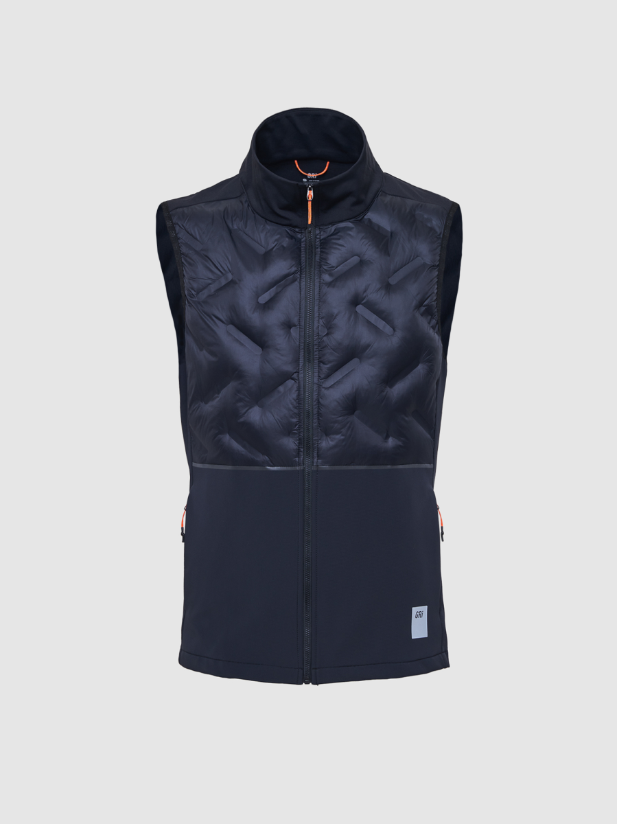Новинка 2023 года. Подойдёт для зимних пробежек при температуре от –5 до –15°С как дополнительный верхний слой. Жилетка сшита из ткани с водоотталкивающей DWR-пропиткой, которая защитит от небольших осадков. Спереди модель утеплена синтетическим утеплителем и флисовым начёсом. Григорий Лазарев, основатель бренда GRI: «Я тестировал образец жилета Полар в прошлом сезоне и в полном восторге от него! Видимо, в этом сезоне тёплая зимняя куртка мне уже не понадобится». Основа: 75% нейлон, 25% спандекс. Вставки: 100% нейлон.