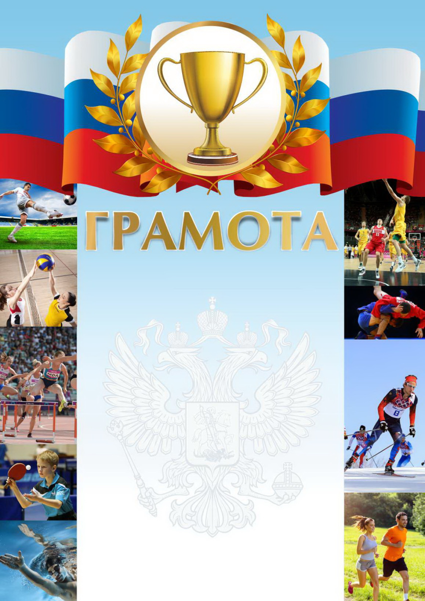 Грамота с изображением спортивной тематики идеально подойдет для награждения спортсменов на спортивных мероприятиях. Формат А4. Грамота напечатана на глянцевой бумаге плотностью 200 г/м2, подходит для надписей от руки или печати на принтере