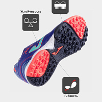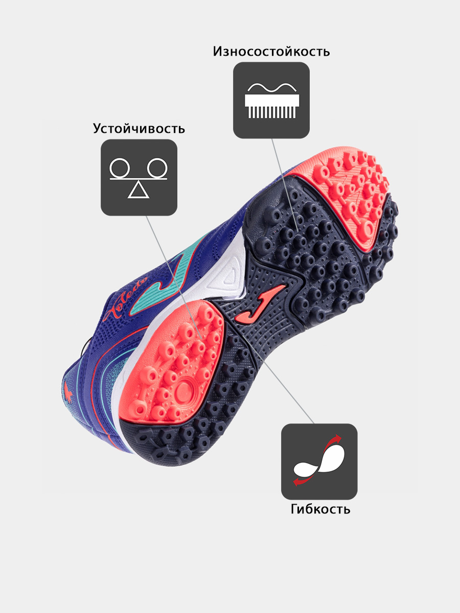 Детская универсальная модель турфов JOMA TOLEDO. Верх выполнен из качественного синтетического материала и обеспечивает отличный контроль мяча. Специальная перфорация с использованием по технологии VTS по обеим сторонам верхней части позволяет отводить излишнюю влагу и тепло, чтобы комфортные ощущения сохранялись в течение всей игры или тренировки. Подошва изготовлена из износостойкой резины DURABILITY. Структура с несколькими шипами снижает давление и гарантирует хорошую поддержку. По бокам модель усилена технологией PROTECTION для защиты от ударов. Канавки FLEXO способствуют превосходной гибкости и естественному движении стопы.