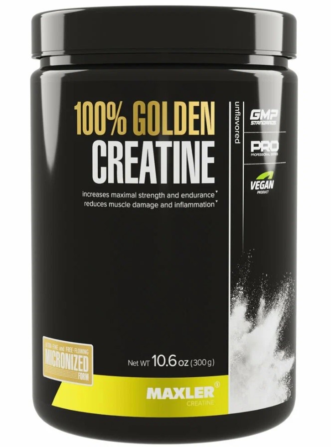 Maxler 100% Golden Micronized Creatine 300 g (can) Что значит креатин для спортсмена? Его прием дает увеличение выносливости, рост объема мышц, усиление синтеза белка, уменьшение боли в мышцах и восстановление после тренировок. 100% Golden Creatine может быть лучше подобных продуктов, так как обладает микронизированной структурой. 100% Golden Creatine легко растворяется, быстро усваивается и мгновенно проникает в мышечные ткани. Все это делает его идеальным продуктом для занятий спортом. 100% микронизированный креатин моногидрат высокая скорость всасывания способствует восстановлению после тренировок дает объем мышцам Как принимать креатин моногидрат Для получения порции разведите 5 г креатина (1 мерная ложка) в 200 мл жидкости. Содержание на: 1 порцию Креатин Моногидрат (Микронизованный [CreaSolv])