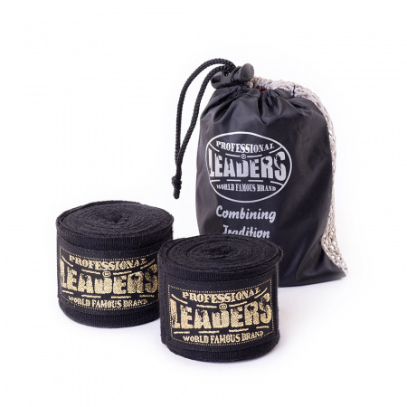 БИНТЫ БОКСЕРСКИЕ LEADERS SEMI ELASTIC 50/50 3.5M, ЧЕРНЫЙ