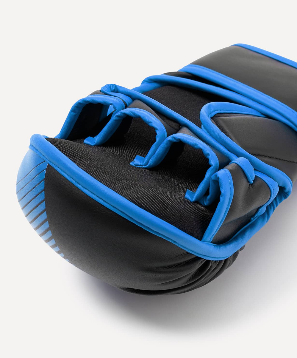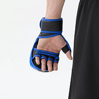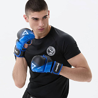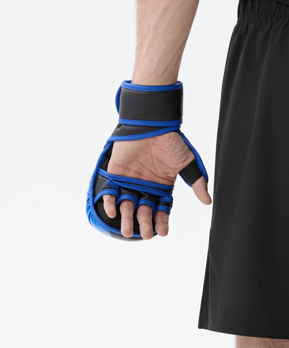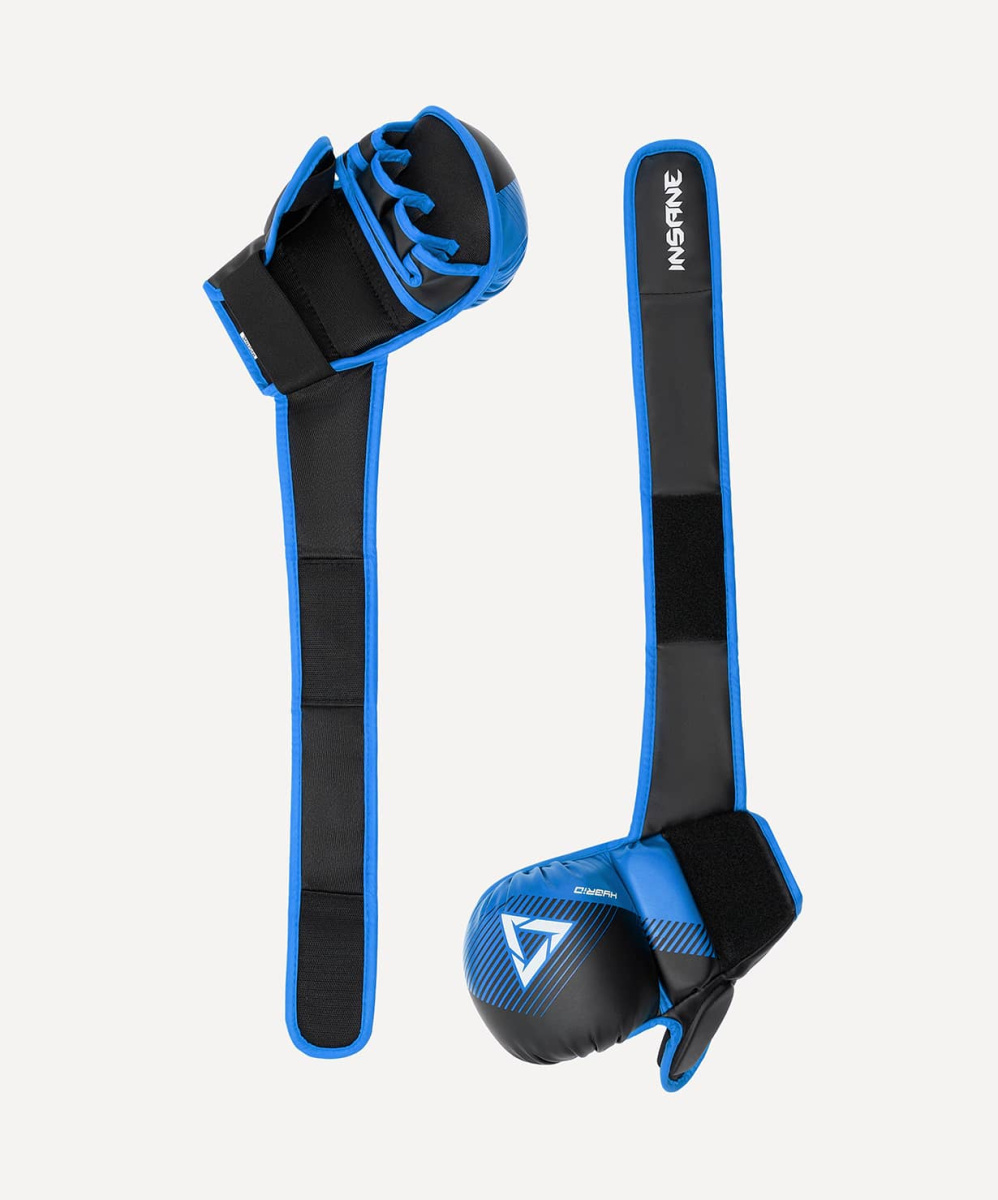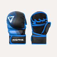 Перчатки INSANE HYBRID – специализированные гибридные перчатки для ММА. Их конструкция разработана с учетом особенностей данного вида спорта: она позволяет бойцу оставаться под надежной защитой и применять как ударные, так и борцовские техники. Перчатки имеют круглую изогнутую форму, которая естественным образом полностью повторяет форму суставов пальцев и кулака, снижая утомляемость и риск получения травм. HYBRID комфортно и плотно облегают руку, а открытая ладонь позволяет проводить захваты, броски и другие приемы как в стойке, так и в партере. Подушка средней жесткости с наполнителем из многослойной плотной пены отлично поглощает удары и минимизирует их вредное воздействие на суставы. Толщина наполнителя позволяет отрабатывать удары на снарядах. Тыльная сторона ладони и отделение для большого пальца имеют дополнительную защиту, которая не сковывает движений. За надежную фиксацию на руке отвечает длинная манжета на липучке – полтора оборота вокруг запястья. Перчатки INSANE HYBRID комфортны и долговечны в использовании. Прочная подкладка быстро сохнет и хорошо отводит влагу, надежная прошивка дополнительно увеличивает срок службы изделия. Преимущества: Гибридные перчатки для ММА; Круглая изогнутая форма; Плотно облегают руку; Открытая ладонь; Дополнительная защита большого пальца и тыльной стороны ладони; Надежная и быстрая фиксация длинной липучкой; Прочная прошивка; Подкладка хорошо отводит влагу и быстро сохнет. Характеристики: Цвет: синий Mатериал внешний: полиуретан Материал набивки: пенополиуретан Размеры: S, M, L Тип упаковки: сумка переноска на молнии Производство: Китай