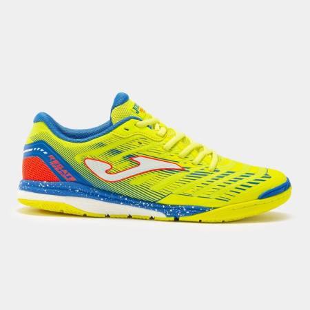 Игровая обувь для зальных покрытий JOMA SUPER REGATE REBOUND одна из самых передовых на сегодняшний день моделей от испанского бренда. Верхняя часть изготовлена из сверхпроницаемого, сетчатого материала, на который сверху нанесен прорезиненный принт, чтобы обеспечить наилучший контакт с мячом, создать точную и комфортную посадку.Область носка, несущая максимальную нагрузку, дополнительно покрыта тонким защитным слоем, что увеличивает износостойкость игровой обуви. Формованная, внутренняя стелька из пены EVA отличается легкостью, стойкостью к механическим нагрузкам, упругостью, не подвержена деформации и создает отличный амортизирующий эффект.Промежуточная подошва выполнена из легкого, пенистого материала Phylon двойной плотности. Гибкая конструкция подошвенного блока разработана в сотрудничестве с ведущими игроками по мини-футболу и отличается чрезвычайной гибкостью в этой оптимизированной версии, сохраняя при этом необходимую устойчивость.Применение технологии Rebound делает подошвенный блок более упругим, обеспечивающим отличный отскок, необходимый для повышения скорости движения спортсмена. Данная технология предполагает использование в подошвенном блоке более легкого и более эластичного материала, который облегчает вес и сохраняет высокие амортизирующие свойства.Резиновая подошва с низкопрофильным протектором разработана, чтобы обеспечить отличное сцепление на поле и с мячом. Технология Flexo, используемая в игровой обуви Джома Регэйт Ребоунд и объединяющая систему специальных канавок, облегчает перекат стопы от пятки к носку, делая движения ноги более естественными и легкими.