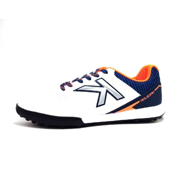 Состав: Синтетический верх; подошва — каучук. Сороконожки являются универсальным типом футбольной обуви, подходящей почти под любые виды покрытий. Обувь с таким типом подошвы отлично подходит для земляных покрытий, искусственной травы, натуральных газонов, а также для игры в зале на паркете. Для изготовления подошвы используют износостойкую резину. Для узкой стопы лучше подходят сороконожки с синтетическим покрытием. Такая обувь плотно держится на ноге и не натирает. К подошве K-GOLEIRO применена особая геометрическая форма, облегчающая движения поворотов, разворотов и вообще маневренности. Эта система позволит избежать получения травм в области колена и лодыжки. Благодаря дополнительным отверстиям в верхней части, Ваша стопа обеспечена оптимальной воздухопроницаемостью. Технологии: K-Flex. Гибкая подошва во всех направлениях; Estrobel. Возможность сгибания подошвы от пятки к носку; Hisking. Синтетический верх с повышенной прочностью и адаптивностью. Turf Outsole.