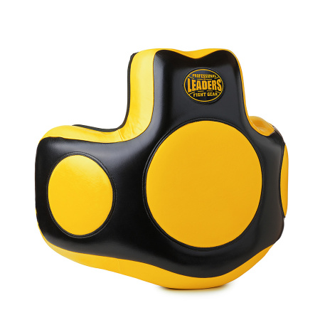 Тренерский защитный жилет Leaders для отработки ударов по корпусу. Изготовлен из высококачественной натуральной кожи Premium класса, аналогов которой на Российском рынке просто нет! Набивка многослойная, выполнена высококачественных пенных составов различной плотности, толщина 12см! Характеристики пенных составов подобраны таким образом, чтобы гасить даже самые мощные удары, позволяя спортсмену работать в полную силу, но при этом не травмировать наставника! Удобные ремни фиксации для подгонки максимально комфортного положения на теле, как по высоте, так и по ширине. Еще одним преимуществом данного жилета - минимальный вес! Благодаря применению пенных составов с технологией Ultra Ligth, инженерам удалось достичь минимального веса! Продуманная форма жилета гарантирует защиту основных ударных поверхностей и не мешает движению на ногах.