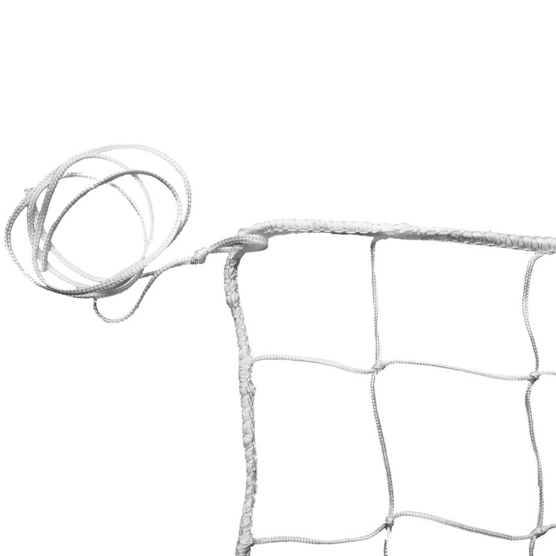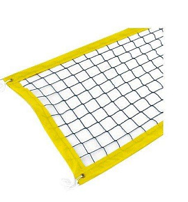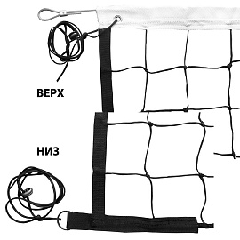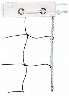 Сетка волейбольная любительская, арт. FS№0, размер 9,5х1 м, нить 3,5 мм полипропилен (ПП), ячейка 10 см., без верхней ленты, цвет белый. Кромки сетки обработаны оверлоком. По два натяжителя с каждой стороны. Без троса.
