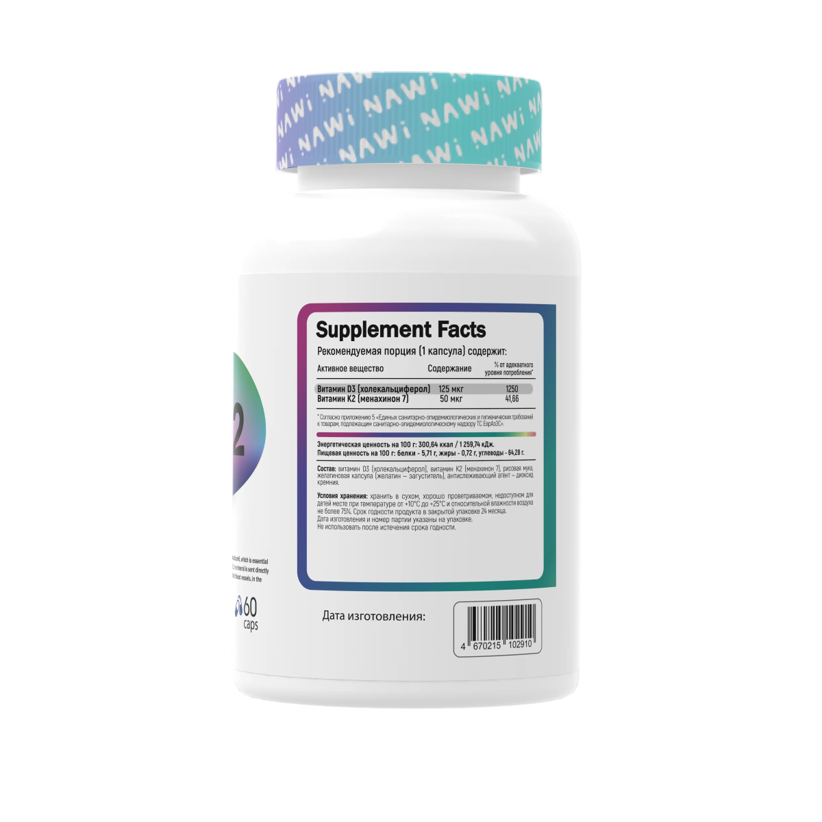NAWI Vitamin D3 + Vitamin K2 60 caps
